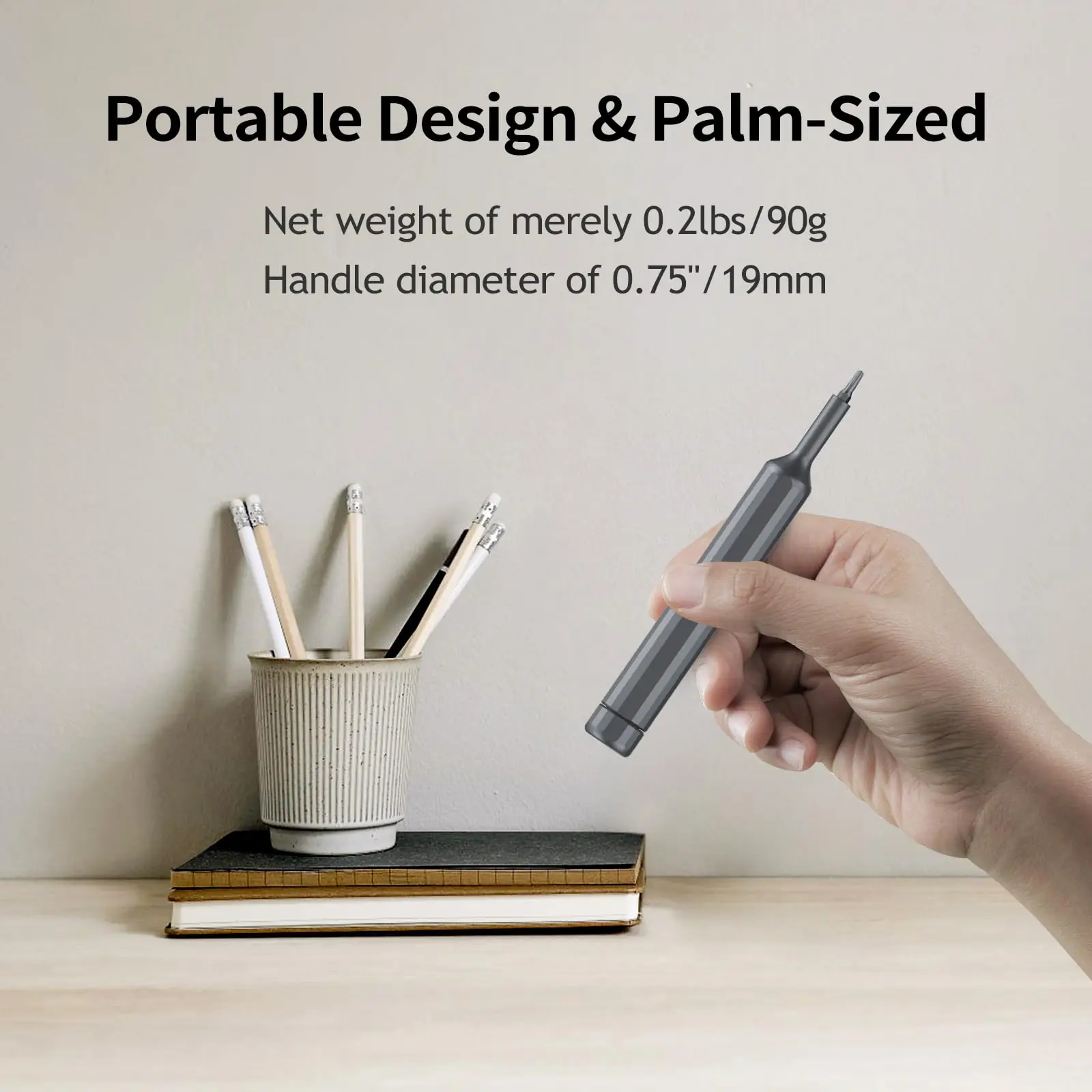 【Compact & Portable】This lightweight pocket screwdriver has a hollow handle for a built-in storage to hold 19 double ended screwdriver bits which you need for small screws and fasteners. The bits attach to the slot magnetically for quick change.