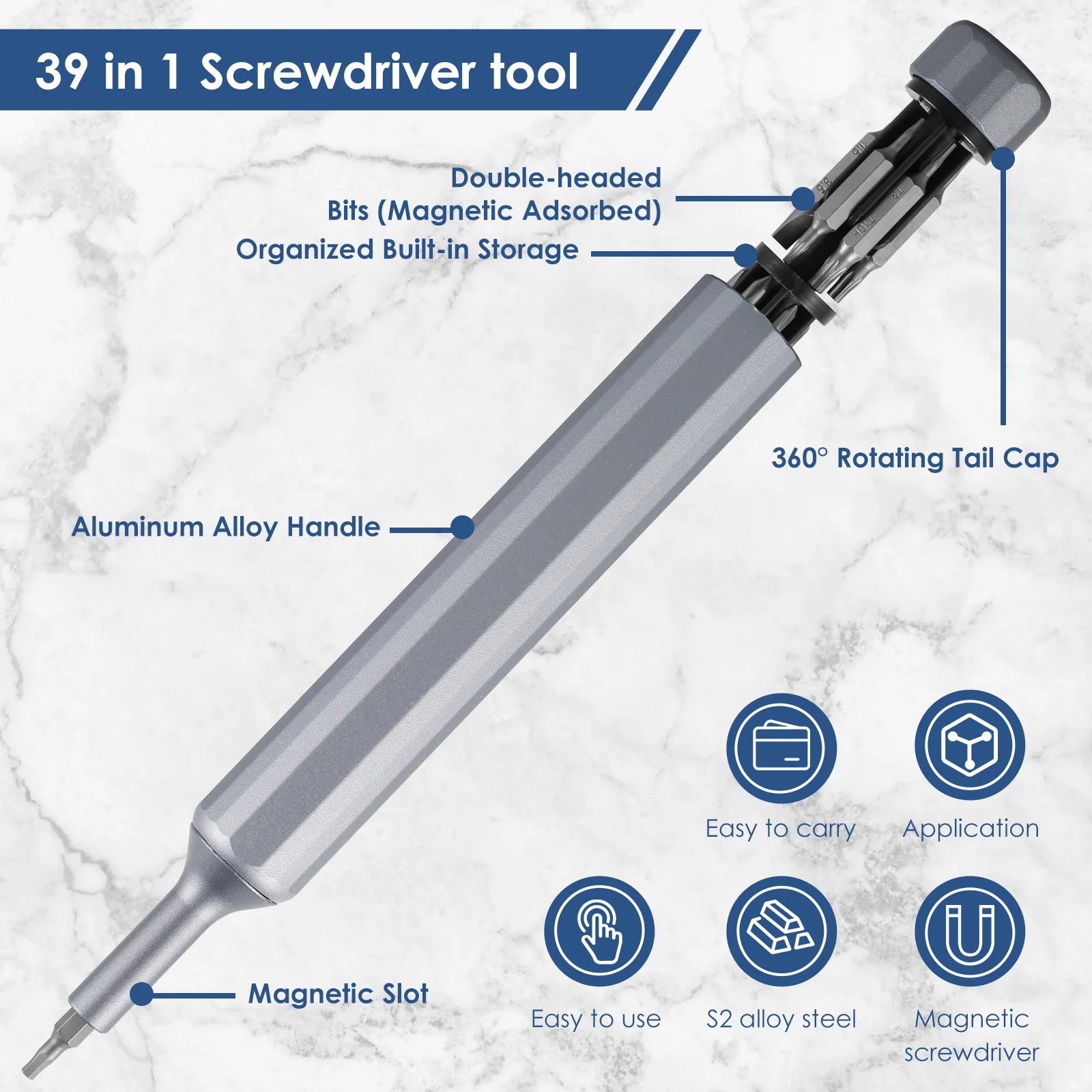 27/39 in 1 Precision Screwdriver Set Manual Pen Small Screwdriver with 38 Magnetic Torx Phillips Drill Bits Mini Repair Tool