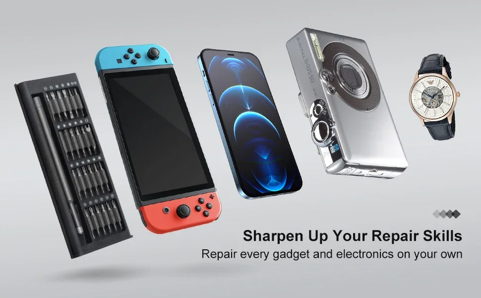 Whether you're building a high-performance gaming PC or repairing delicate electronic devices, a screwdriver set can handle it with ease. It is suitable for PC, Mac, tablets, iPad, Apple devices, mobile phones, Switch, game consoles, Gameboy, remote control toys, watches, glasses, knives, cameras, jewelry, etc., meeting all your repair needs.